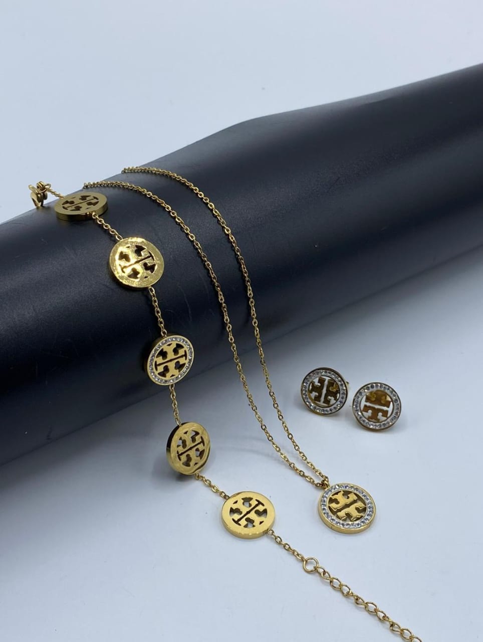 Elevate your accessory game with this Premium Tory Stainless Steel Jewellery Set, thoughtfully curated for women and girls who love elegant yet versatile styling. This beautifully coordinated set includes a delicate necklace, matching earrings, and a graceful bracelet, all featuring a charming tory design that adds a touch of femininity and sophistication.